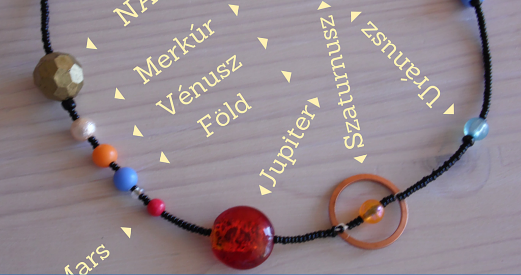 Tanuljuk csajosan a bolygókat! Az egész ott kezdődött, hogy 4. osztályos lánykámmal környezetismeretet tanultunk. Persze a bolygókról, mert ugye egy alsósnak már csak nem árt tudni a hasnyálmirigyről (harmadikos tananyag), és a Naprendszerről sem. Ez persze már egy másik bejegyzés témája lehetne, hogy szerintem a mostani környezetismeret tananyag nem alsósoknak való, felesleges ennyi elvont fogalmat, definíciót, adatot a fejükbe tölteni, elég lenne, ha sok-sok kísérlettel, sétával, növények ültetésével, szóval megannyi tapasztalattal megalapoznák az élővilág, környezet és felfedezésének szeretetét. Ehhez járul még az is, hogy 10 éves lánykám erősen kiskamaszodik, (bár, mint a múlt környezet tananyagból kiderült, ő még csak gyerekkorban van, olyan, hogy kiskamasz nincs), amit leginkább onnan lehet tudni, hogy naphosszat a plafont bámulja, és a legtöbb dolog szerinte hülyeség. A bolygók is. Ráadásul utálja is, és kész. De hát amit meg kell tanulni, azt meg kell, így kis szünetet hagytam neki, hogy ismét nyugodtan bámulhassa a plafont, és magamnak is, hogy megpróbáljam menővé alakítani a bolygókat. 🙂 Így jött az ötlet, fűzzünk nyakláncot a bolygókból! Elárulom, az ötlet bevált, így lelkesen kerestük a különböző színű, és méretű gyöngyöket. Szerencsére, elég sokat fűztünk még az oviban, így volt miből válogatni: az űr fekete kásagyöngyből, a bolygók színes gyöngyökből készültek. A Napot egy üveggyöngyből készítettük, amit arany színűre festettünk, a Marsot is festenünk kellett: egy rózsaszín gyöngyöt varázsoltunk vörössé. Az egyetlen gondot a Szaturnusz gyűrűje jelentette, amivel momentán nem rendelkeztünk. Így apa kapta meg a feladatot, a porból és jégből álló gyűrű beszerzését. Szerencsére ezt remekül megoldotta, így lett az 1 colos réz tömítőgyűrűből a Szaturnusz gyűrűje. És néhány érdekesség, hogy még menőbbek legyenek azok a bolygók! Ma a Naprendszerünkben 8 bolygót és 5 törpebolygót ismerünk (a Plútó 2006-tól már csak törpebolygónak számít).: Merkúr, Vénusz, Föld, Mars, Ceres, Jupiter, Szaturnusz, Uránusz, Neptunusz, Plútó, Haumea, Makemake, Eris Merkúr: A Naphoz a legközelebbi bolygó, ezért nagyon forró, a nappali 430 fok napernyővel is elviselhetetlen lenne, míg az éjszaka -170 fokban csonttá fagynánk. Vénusz: Esthajnal csillagként is ismerjük, bár nem csillag. Régi korokban nagy segítség volt a hajósoknak a tájékozódásban. Mars: egy marsi nap 4 óra 39 perc és 35 másodperc. Na, akkor ebből hány órát kellene a suliba járni? Mekkorát ugranék a Marson? Ha otthon fél métert tudsz ugrani, a Marson 132 cm magasra is ugorhatnál, aminek oka, hogy a Marson sokkal kisebb a gravitáció. Jupiter: A legnagyobb tömegű és méretű bolygónk. Szaturnusz: Ismertetőjele a hatalmas gyűrűrendszere. A gyűrűk porból, és jégből állnak. Uránusz: Itt 42 évig van nappal, majd ismét 42 évig éjszaka. Neptunusz: Kék színét a metánnak köszönheti. A kiskamasz, aki a nyakába vette a világot! 🙂 Szép napot! A bejegyzés saját képeket tartalmaz. Ha tetszett a bejegyzés, megköszönöm, ha megosztod másokkal is. Köszönöm, hogy meglátogattál, térj be máskor is, érdekes inspirációkkal, egyszerű receptekkel, könnyen kivitelezhető ötletekkel várlak. ♡ A blog Facebook oldalához ide kattintva csatlakozhatsz.