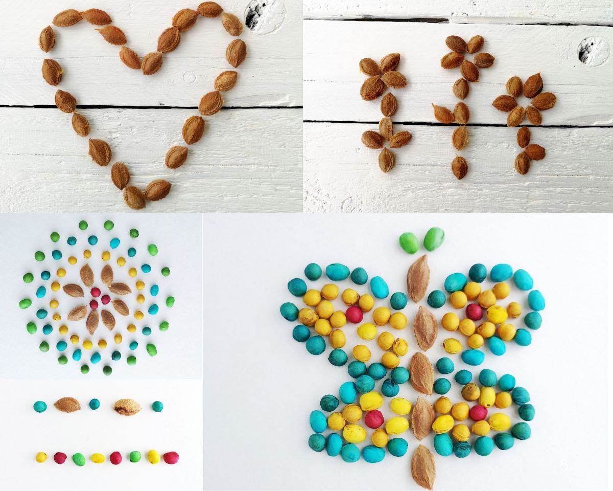 A natúr vagy színezett magokból mindenféle képet kirakhattok.